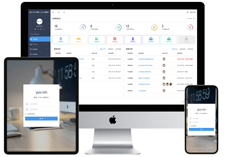 智能辦公管理系統采用Web H5技術開發,支持手機、電腦、平板多端同步管理,實現異地協同,多點辦公,隨時使用,幫您擺脫時間和空間的限制,帶您進入移動辦公新時代。